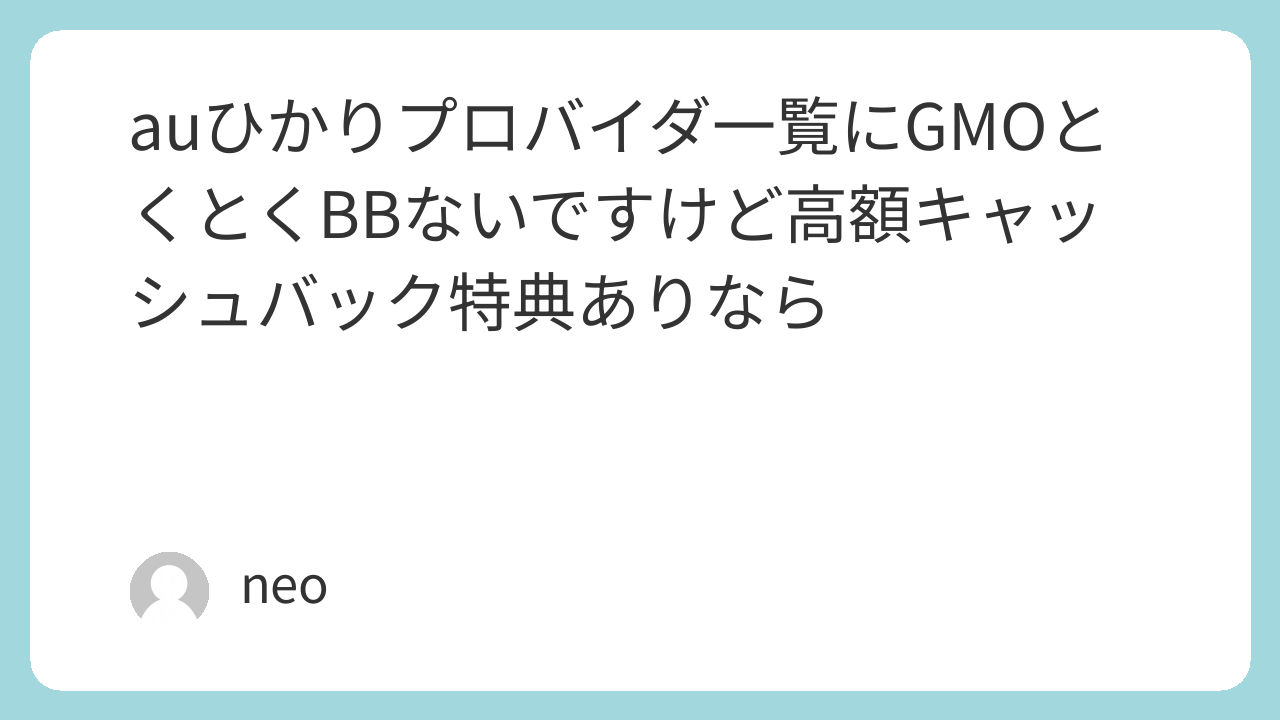 auひかりのプロバイダーで迷ったらGMOとくとくBBがおすすめ!